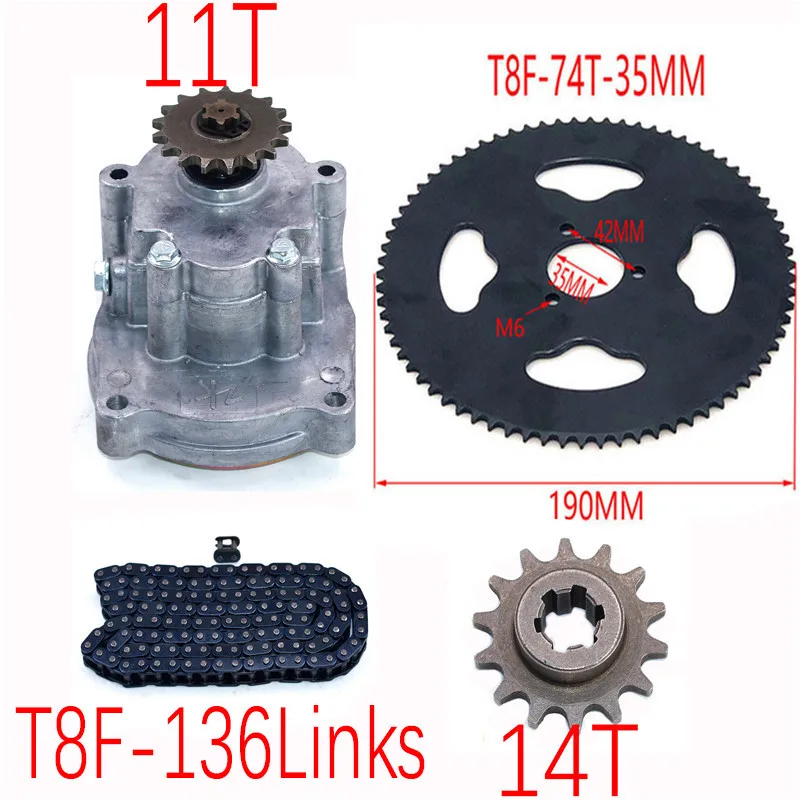 Цилиндрическая Шестерня T8F, зубчатая передача с цепью для 33cc 43cc 49cc Ty Rod II Go Kart Mini Moto Dirt Bike Scooter Xtreme ATV багги