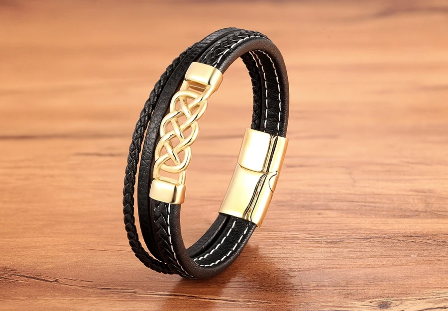 Многослойная кожаная комбинация, маленькие аксессуары, мужские брас...