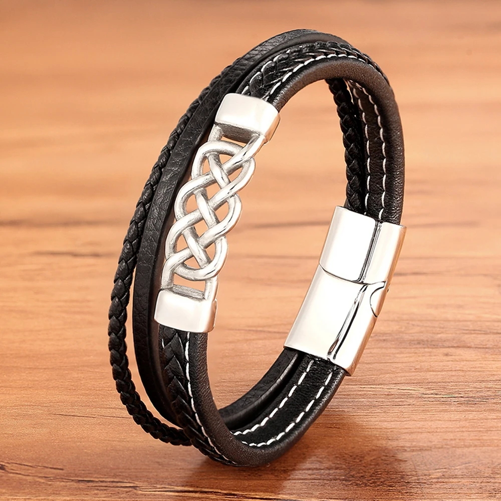 Многослойные аксессуары для мужчин, браслет из кожи и нержавеющей с...