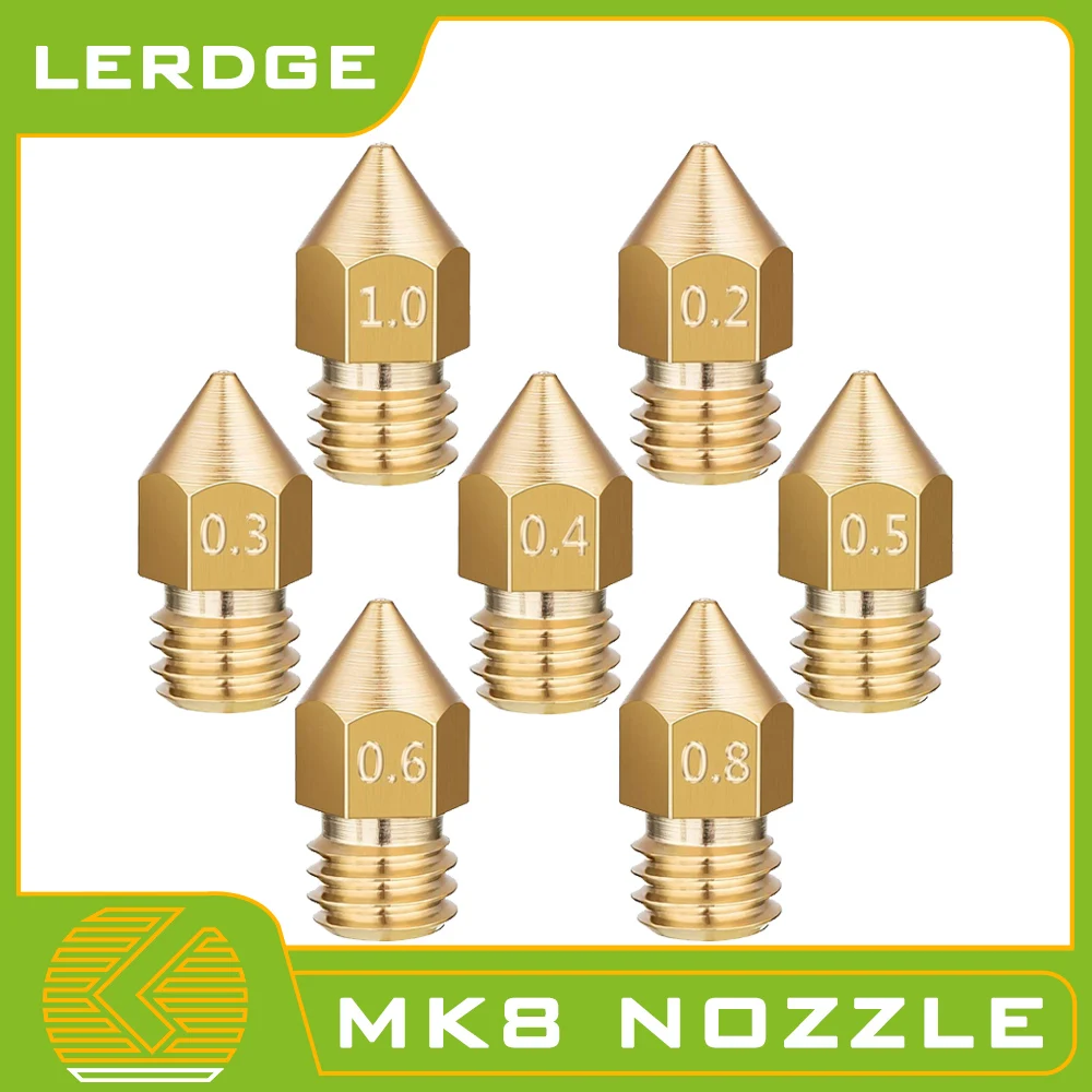 Форсунка для экструдера принтера LERDGE MK8, запчасти для 3D-принтера 0,2 мм, латунная медная Форсунка 0,3 0,4 0,5, аксессуары для Makerbot