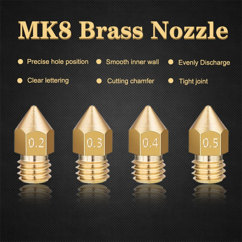 Резьбовое сопло MK8, цельнометаллическое, 0,2 мм, 0,3 мм, 0,4 мм, 0...