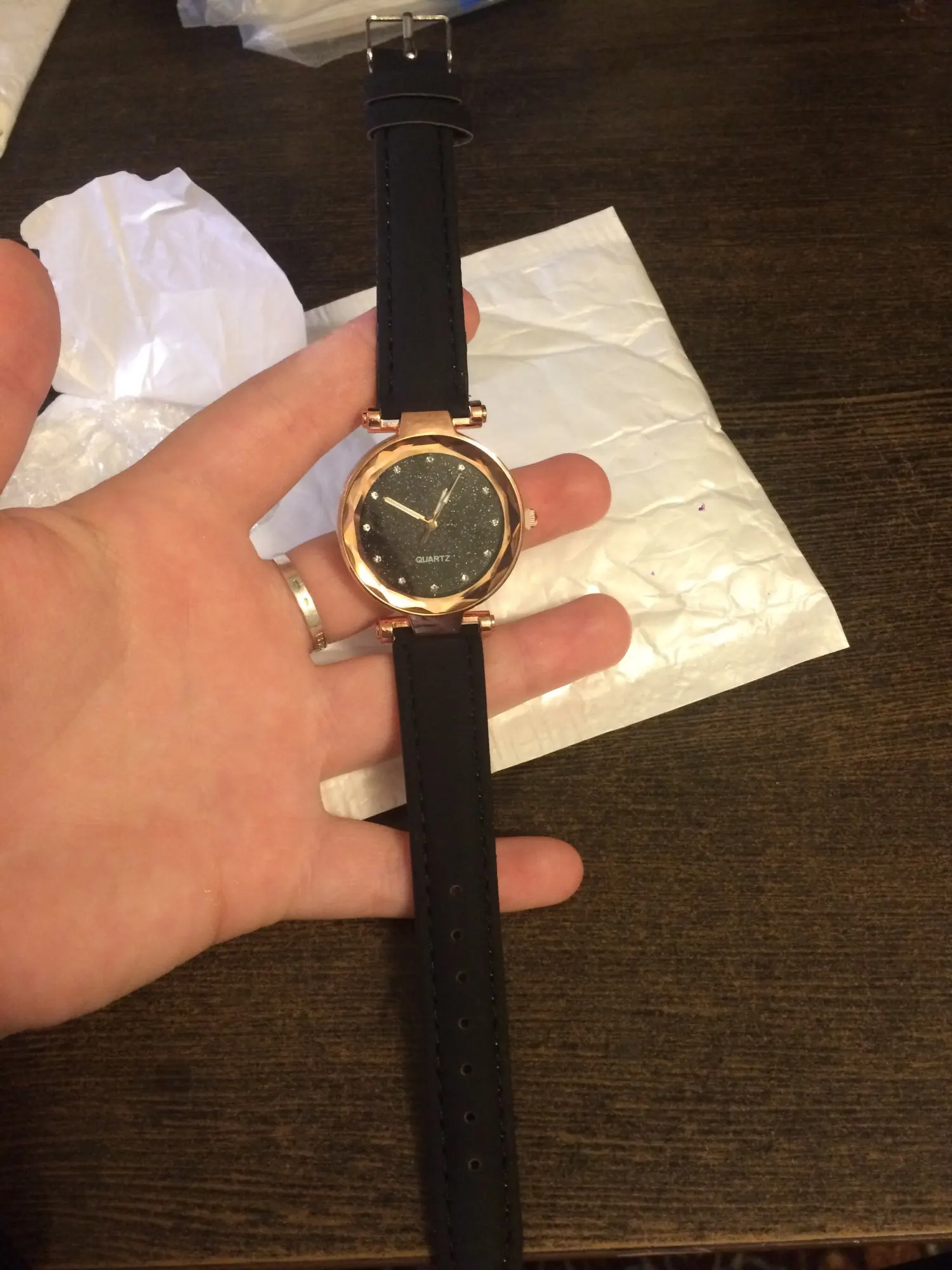 хорошие красивые часы. соответствуют описанию, в точности как на фото. качество ремешка могло бы быть и получше. за эти деньги полностью оправданы.