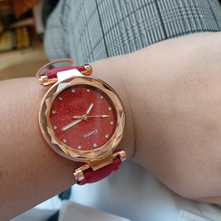 Часы высокого качества с полуремешками из матовой замши с толстым кристальным фоном, они имеют очень приятный блеск, они не погружены в воду и должны выглядеть как фантазийные ювелирные изделия Я рекомендую товар