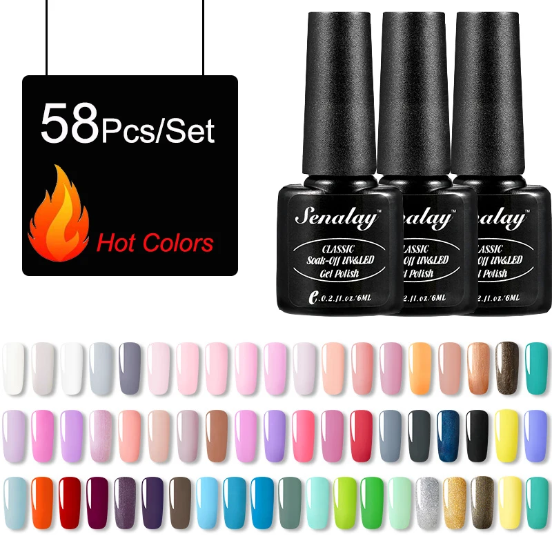 Гель-лак SENALAY для ногтей 58 шт./компл., цветные гели для ногтей для маникюра, полуперманентный отмачиваемый лак для дизайна ногтей