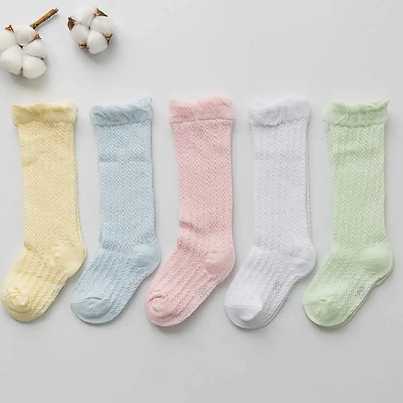 Детские носки, летние тонкие детские сетчатые носки до колена с бан...