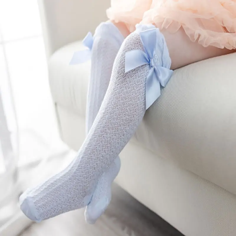 Детские чулки, летние тонкие детские сетчатые гетры до колена с бантиком и противомоскитной сеткой, свободные чулки принцессы для девочек