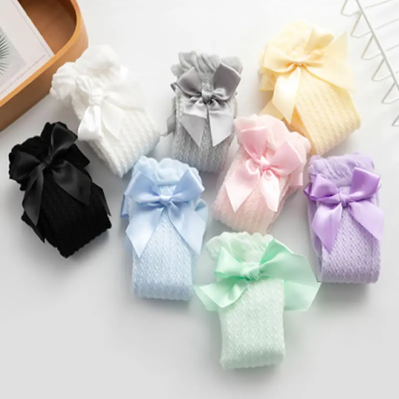 Детские чулки Летние тонкие детские носки в сеточку с бантиком для Антимоскитные штаны по колено; Гетры; Мягкие свободные Kis колготок для девочек, платье принцессы