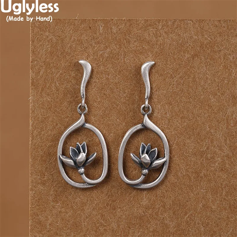 Uglyless 100% настоящий тайский серебро 925 Серебряные фотообои для женщин полые цветы серьги Восточная красота винтажное платье ювелирные изделия
