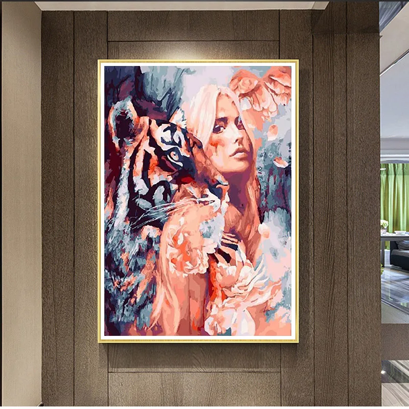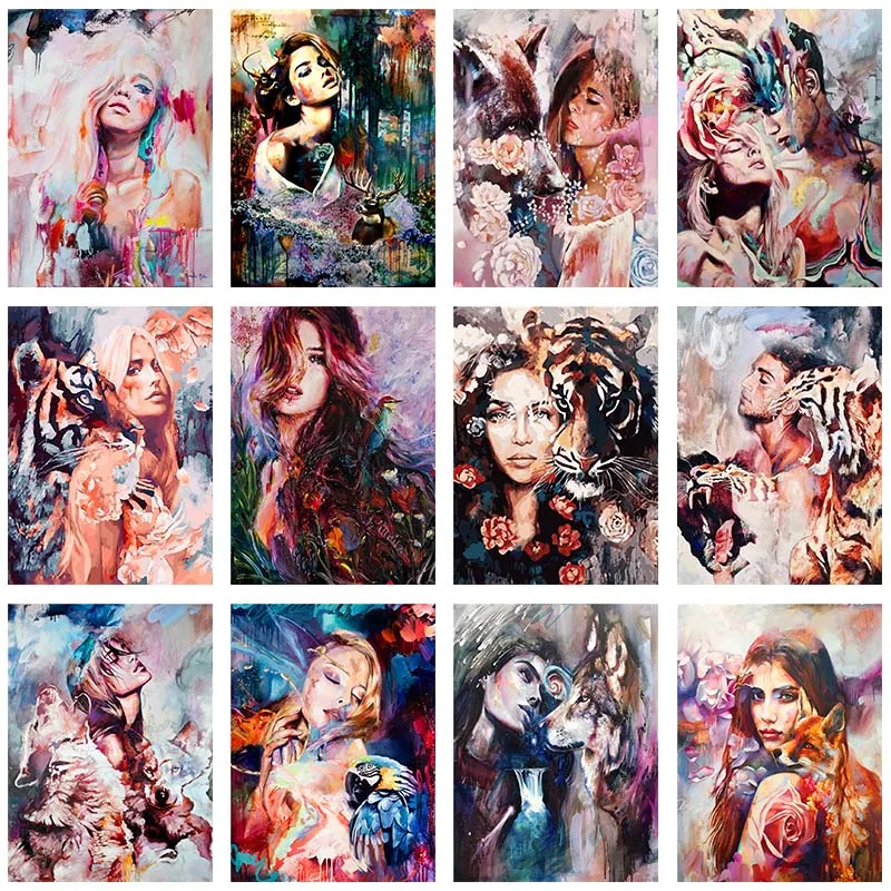 Абстрактный волк девушка DIY Алмазная Картина Вышивка крестом 5D полный квадрат дрель животное тигр Алмазная Вышивка Птицы домашний декор