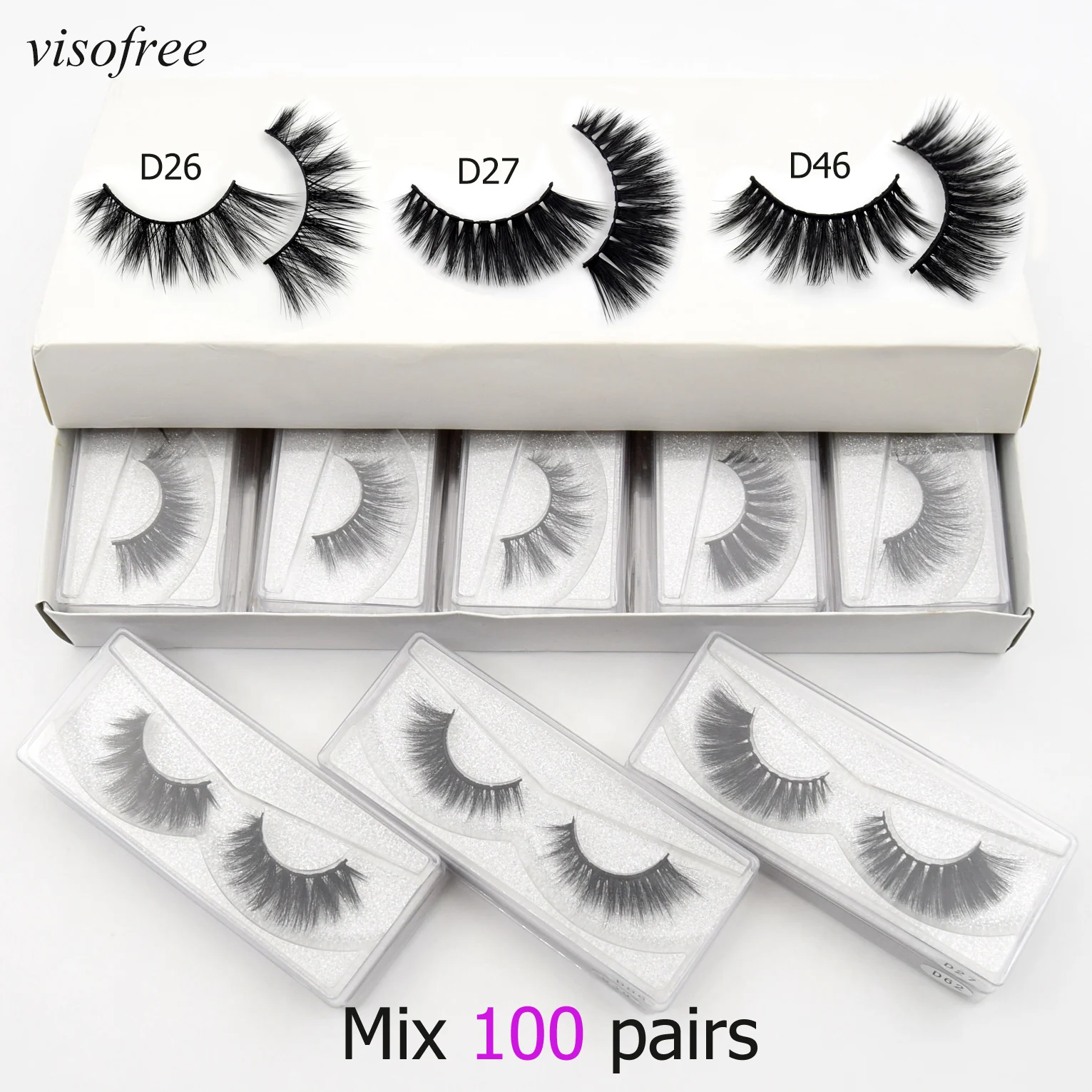 100 парупак. visofree 3D Искусственные норковые ресницы wispy полная полоса ресниц толстые ресницы оптом накладные ресницы оптом