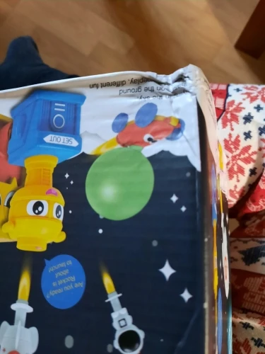 товар отправили сразу, но немного дольше заявленного шёл, соответствует описанию, коробка ничем не защищена, поэтому немного помялась, но сама игрушка целая. ракета и космонавт конечно так высоко не взлетают и летят косо, но общее впечатление от игрушки нормальное, соединение деталей хлипенькое