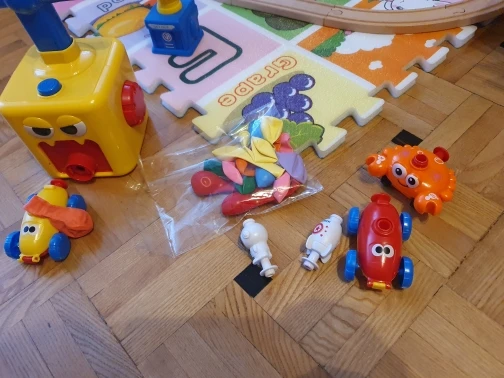Забавная игрушка! Быстрая доставка. Доставка в Испанию занимает 2 недели. Игрушка прибыла хорошо защищена и в прекрасном состоянии. Это точно так же, как в описании, включая воздушные шары, 2 машины, краба и астронавта. Эта игрушка хорошего качества имеет красивый дизайн и много цветов. Соединение работает хорошо, и маленьким детям очень легко менять игрушки и надувать шары. Мой 3 год очень долго развлекает. Я доволен покупкой. Я рекомендую эту игрушку!