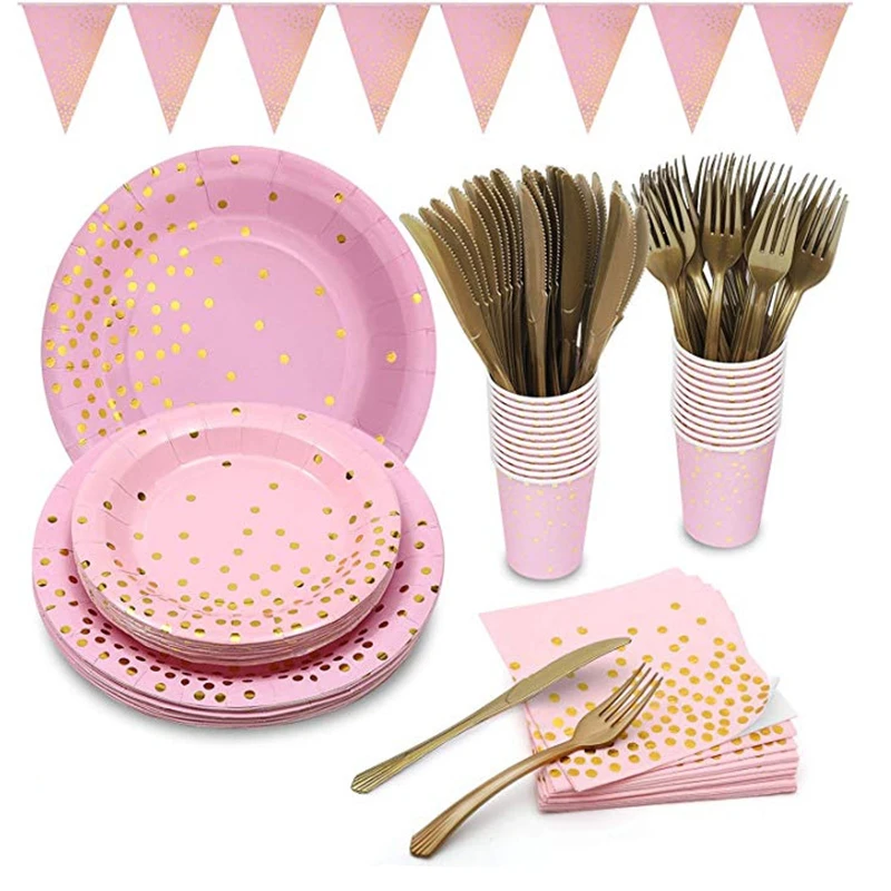 Розовое золото вечерние набор одноразовой посуды бумажные стаканчик...
