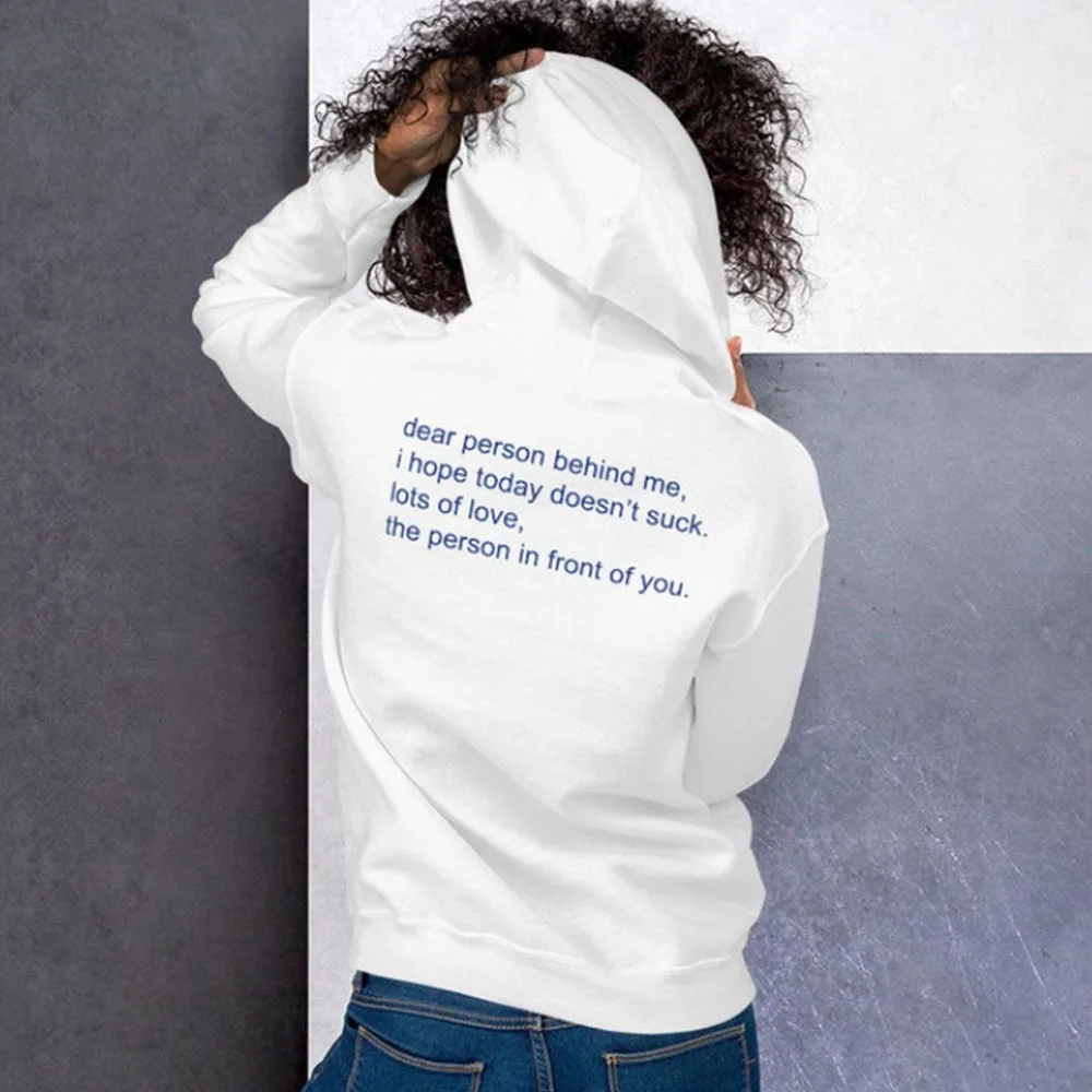 Женская толстовка с капюшоном Dear Person Behind Me Harajuku, повседневная толстовка унисекс с длинным рукавом и капюшоном размера плюс, модные Джемперы 90s, пуловеры