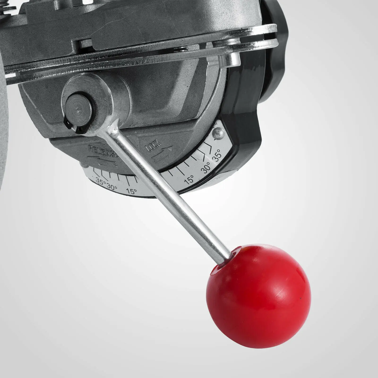 Он питается от двигателя мощностью 230 Вт, 60 Гц, который пиксет на 350 Вт, Шлифует практически любой тип и размер цепи.
