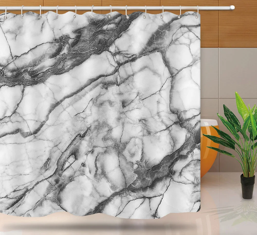 Занавеска для душа с мраморной текстурой, 3D занавеска для душа в ванную комнату, водонепроницаемая шторка из полиэстера с крючками, Douchegordijn