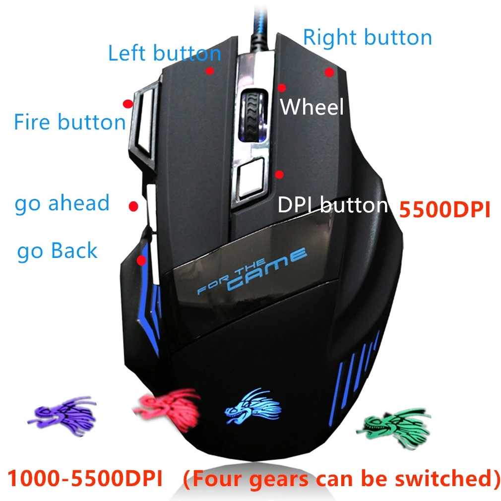 5500DPI USB Проводная игровая мышь 3D светодиодный оптический 7 кнопок Pro Gamer компьютерные мыши для настольного ПК ноутбука Регулируемая игровая мышь 2019