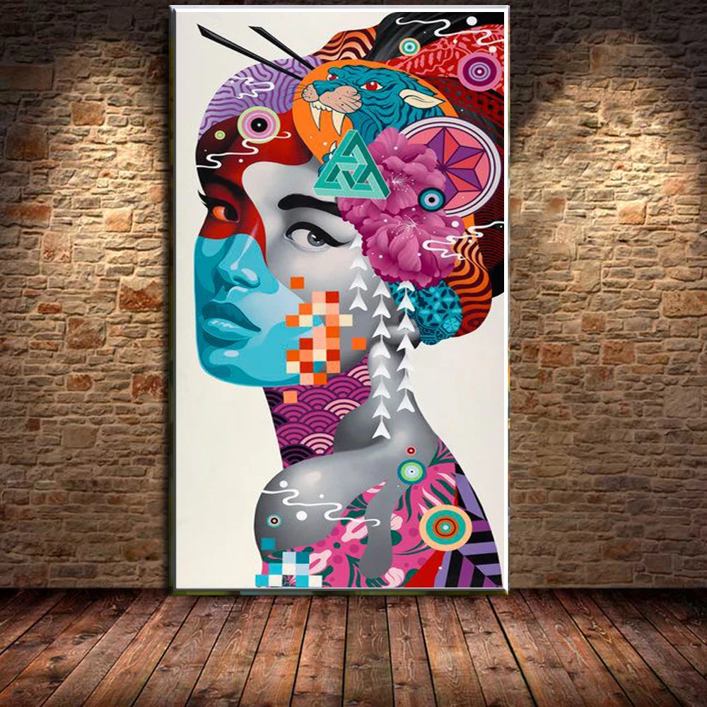 Граффити поп-арт Женская Картина на холсте Современная Настенная фотография стены для гостиной домашний Декор стены