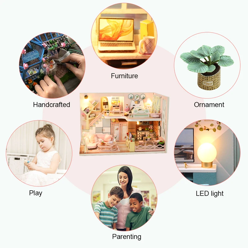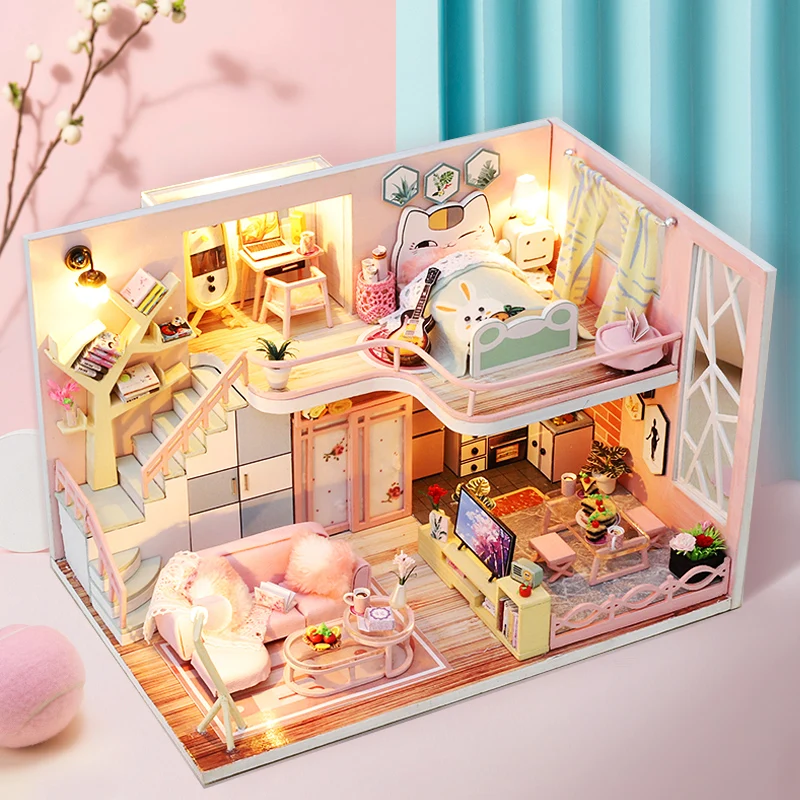 Кукольный домик CUTEBEE, миниатюрный, с мебелью, собирать деревянные