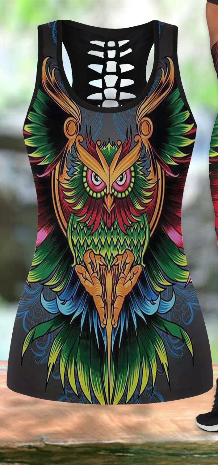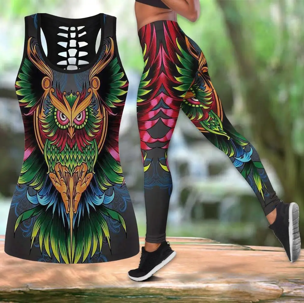 Модная 3D печать маска для лица с животными Рисунок совы женский полый топ и леггинсы для хипстеров для отдыха женский сексуальный жилет одежда S-66