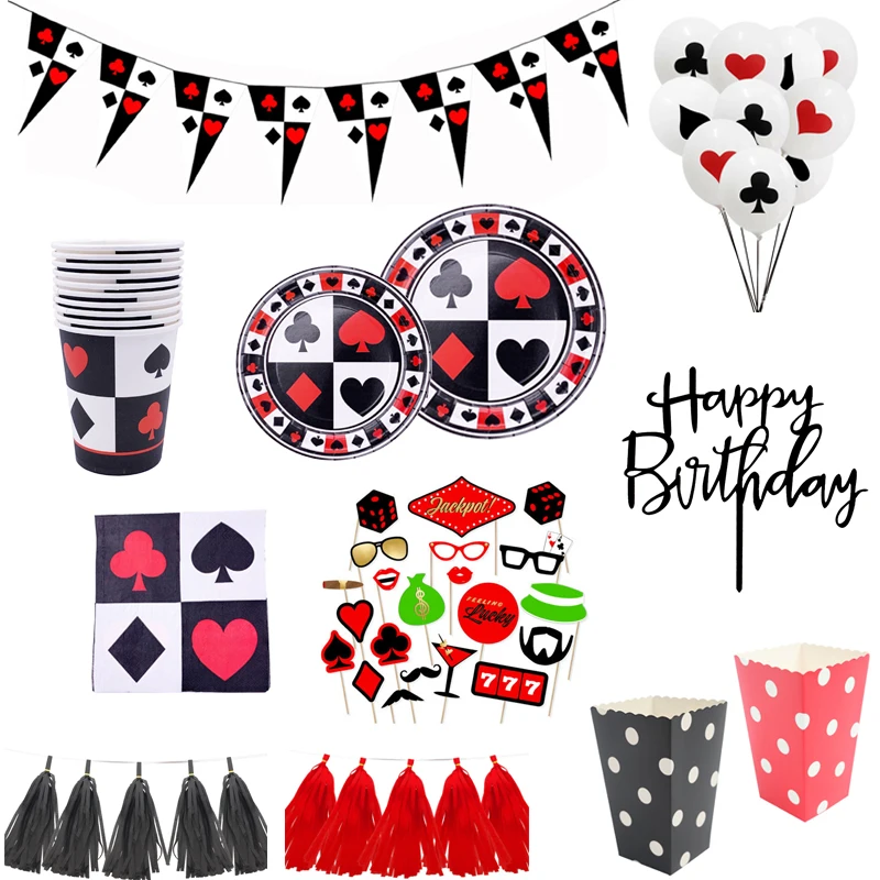 Казино тема вечерние украшения покер карты бумажная салфетка под тарелку кружку bannner висит баннер на день рождения с воздушных шаров из латекса, расходные материалы