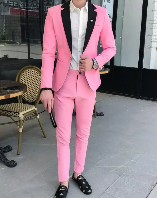 Корейский Стильный смокинг для жениха, Черная шаль с лацканами на одной пуговице, Свадебный Мужской Блейзер (пиджак + брюки), 2 шт.