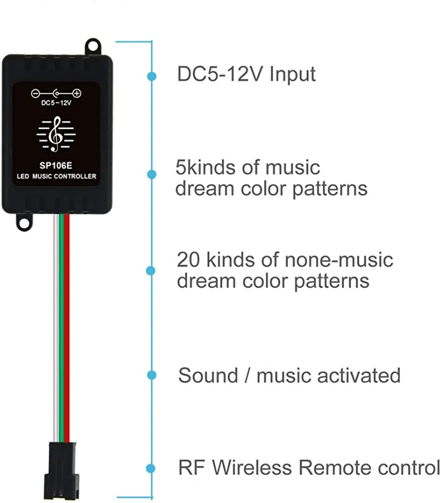Светодиодный музыкальный контроллер WS2812B, беспроводной пульт дистанционного управления со звуковой активацией для WS2811, WS2812, SK6812, SK6812-RGBW