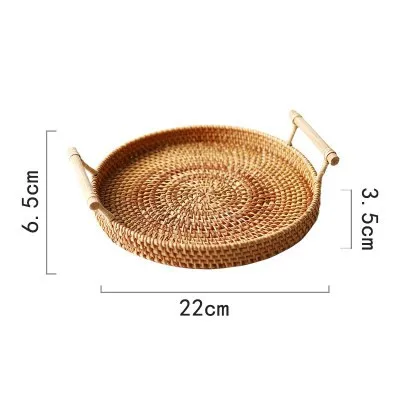 Поднос для хранения из ротанга, круглая плетеная корзина ручной работы с ручкой, ротанговый сервировочный поднос, плетеная корзина для хлеба, фруктов, еды, завтрака-ручной поднос для фруктов, хлеба, закусок, круглая плетеная корзина, поднос для хранения японского чая ручной работы, декоративный поднос для чайной чашки