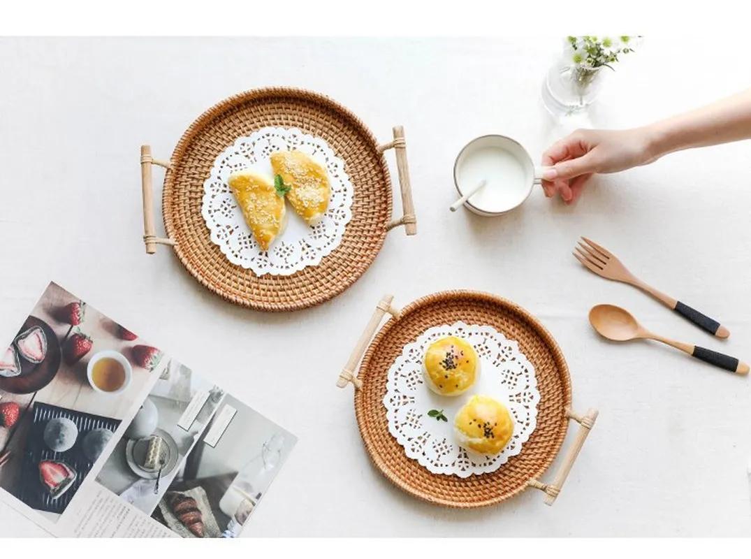 Поднос из ротанга ручной работы, импортный лоток для хлеба, фруктов...