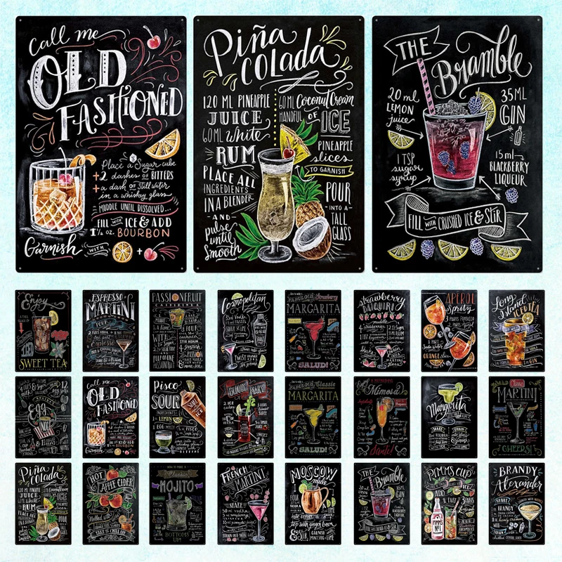 Tiki украшение для бара открытые летние пивные ретро металлические жестяные знаки Mojito Martini коктейли брикет художественные наклейки для паба бара Настенный декор