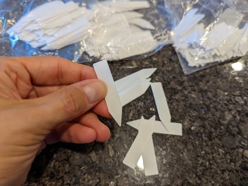 Соотв. ожидаемому. Хорошие маленькие Именные Бирки Для Маркировки большого количества маленьких саженцев. Достаточно прочный для повторного использования, но достаточно доступный для потери. Быстрая доставка и получение в течение 19 дней в центральный Канаду.