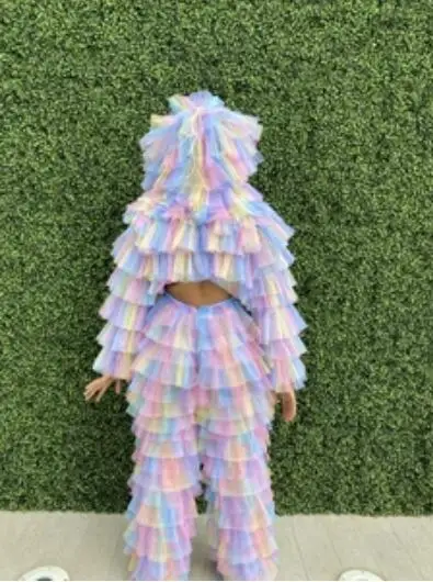 Женская короткая куртка с капюшоном, яркая Радужная короткая куртка из тюля с оборками и длинными рукавами, одежда для улицы, 2020