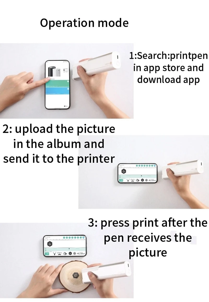 Эксплуатация: Wi-Fi linkОсобенности: несколько вариантов чернилЭффективность: печать за одну секундуМатериалы для печати: Нет ограничений на материалы могут быть напечатаныВес: 255 гРазмер: 174*53*30 ммПодключение к сети wifi 802,11 b/g/nЁмкость-1200 мА/ч, 7,2 VЗарядный интерфейс type-cСистема требует Android/IOSДатчик ролика захвата движенияПолный картридж срок службы печати 3500 раз