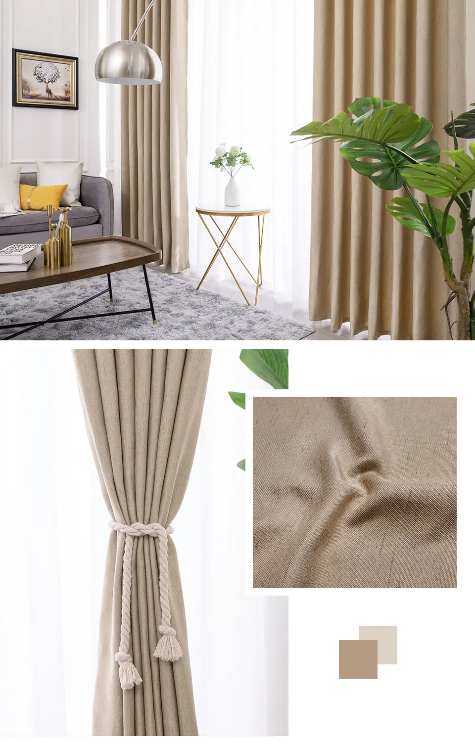Затемняющие шторы CDIY из искусственного льна, однотонные современн...