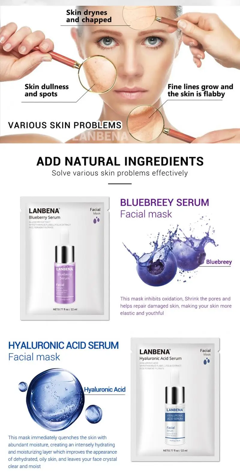 Маски для лица с гиалуроновой кислотой и витамином с из японской микрофибры увлажняющие Антивозрастные увлажняющие маски для ухода за кожей TSLM1
