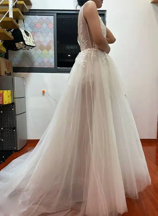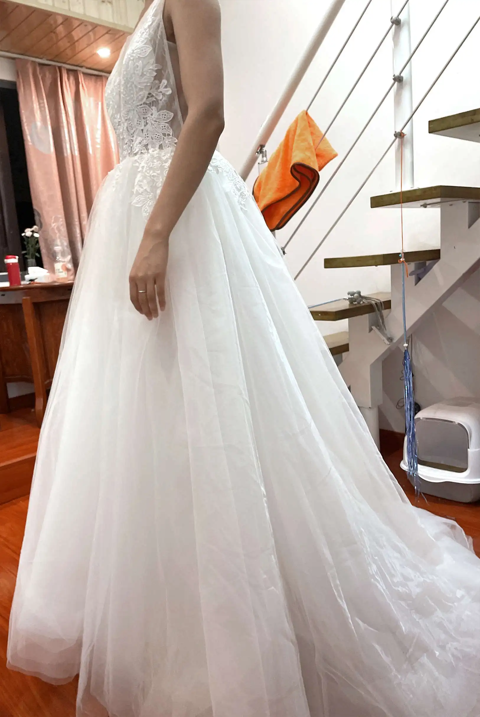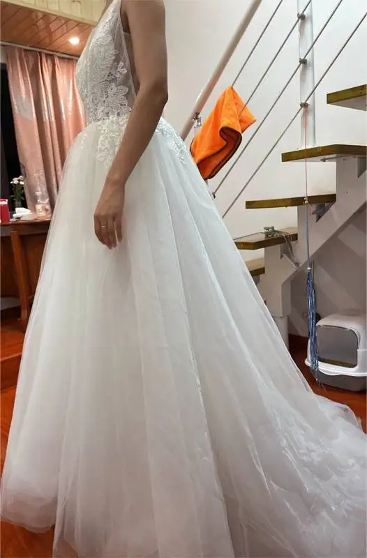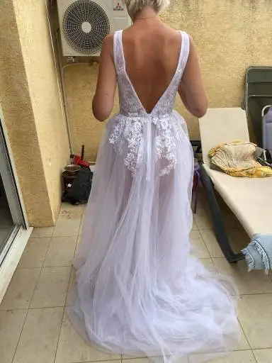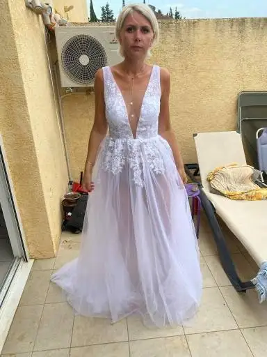 Идеальное платье! Как на фотографиях. Ткань очень приятная и плотная. Кружево и вышивка высокого качества. Я сделал это со своими измерениями, и он прибыл идеально, только на 3 сантиметра больше, но нет проблем. Большое спасибо продавцу