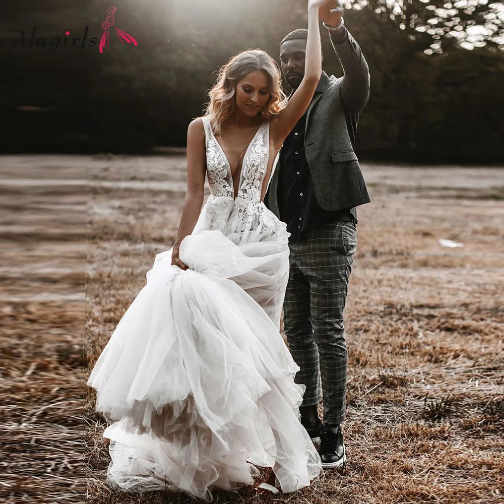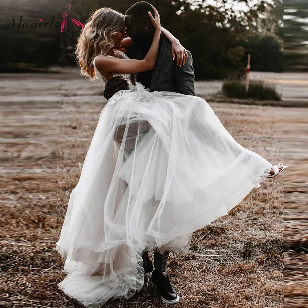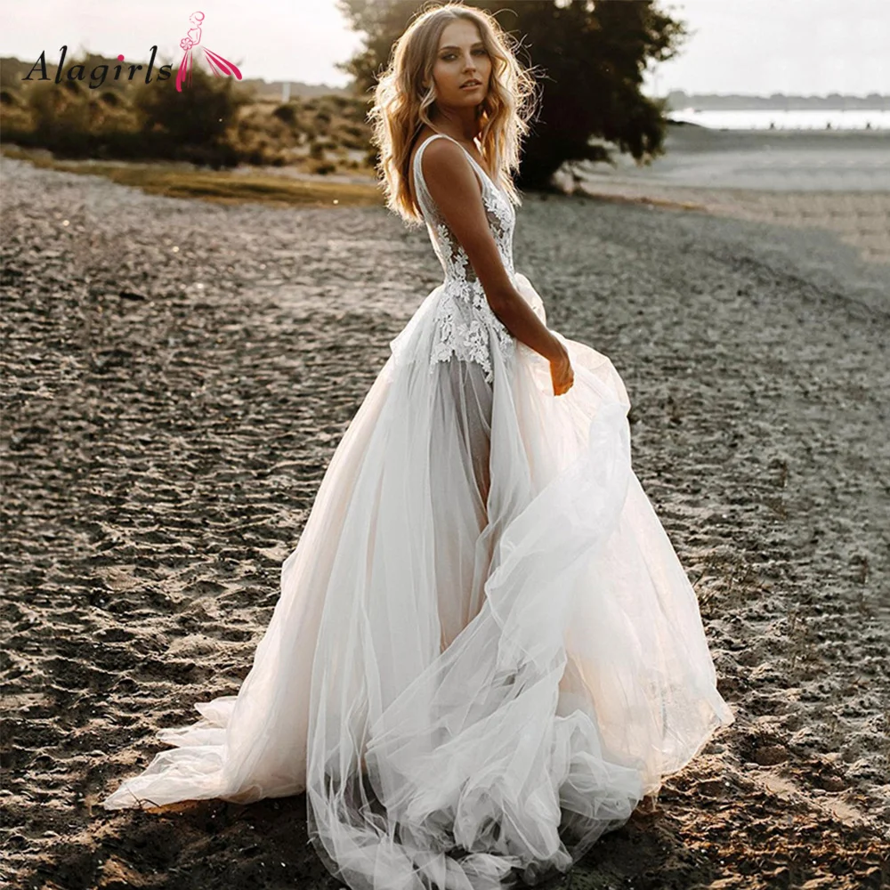ТРАПЕЦИЕВИДНОЕ пляжное платье свадебное платье-бохо, свадебное платье цвета слоновой кости, сексуальное кружевное свадебное платье с аппликацией, свадебное платье