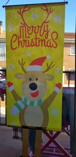 Ожидала большего, но оказался обычный крашенный спанбонд, кое-где неровные края в обрезке. Попался плохой плакат со снеговиком - поломанные палки с черной плесенью. Открыла спор и продавец сразу согласился вернуть половину потраченных денег. За это звезду не снимаю, честность и ответственность ценю. Брала полный комплект - вертикальные полосы, квадрат и снеговик. Ленточки, чтобы закрепить на крючок есть в комплекте. К тому же, есть все 4 крючка для полотен с двухсторонним скотчем. Можно крепить на двери, стены и прочее. После мытья краска с плакатов не полезла. Доставка в Минск за 2 месяца.