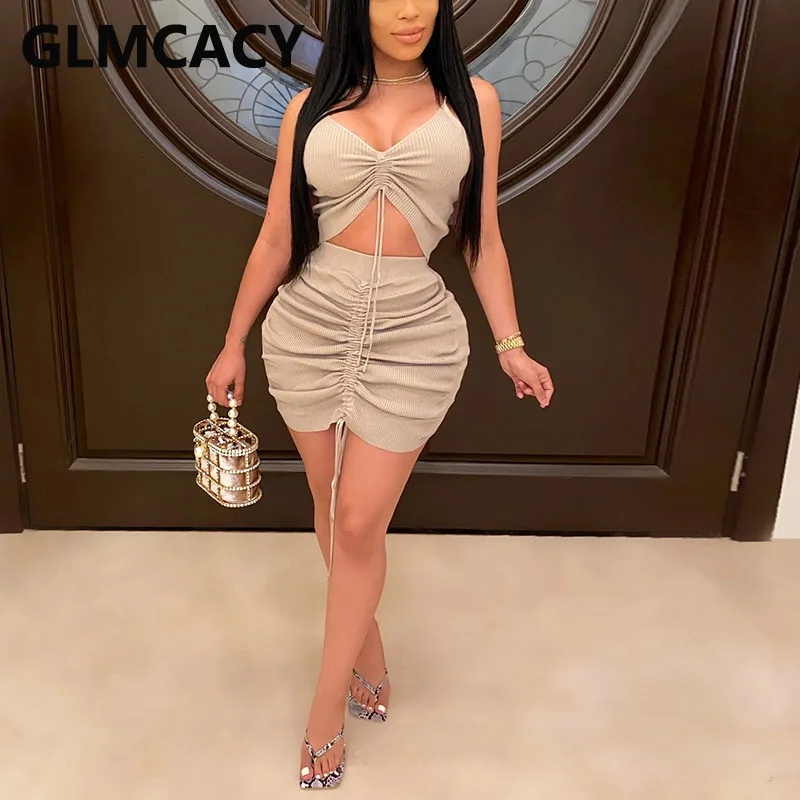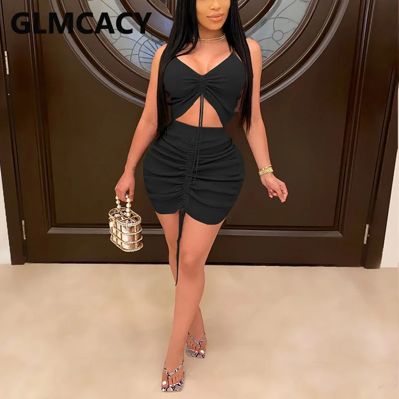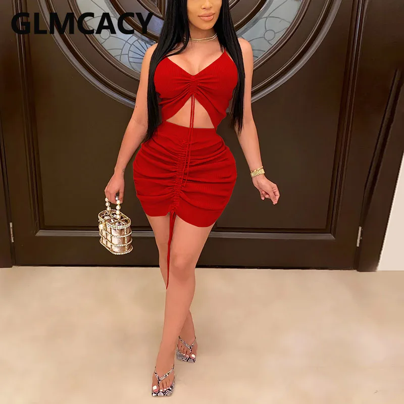 Женский укороченный топ на завязках с v-образным вырезом и мини-юбка, летний сексуальный костюм