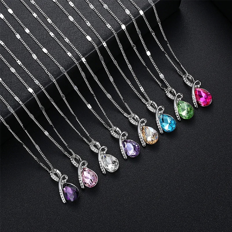 Женская элегантная подвеска в форме капли, ожерелье, Свадебная вечеринка, ювелирное изделие, подарок, серебряная цепочка, хрустальные стразы, ожерелье