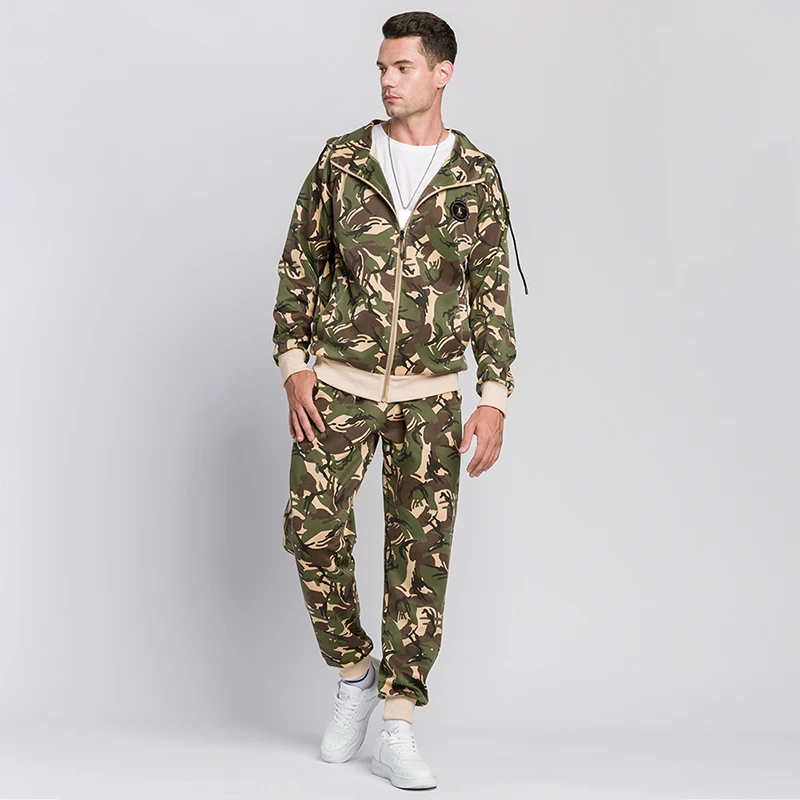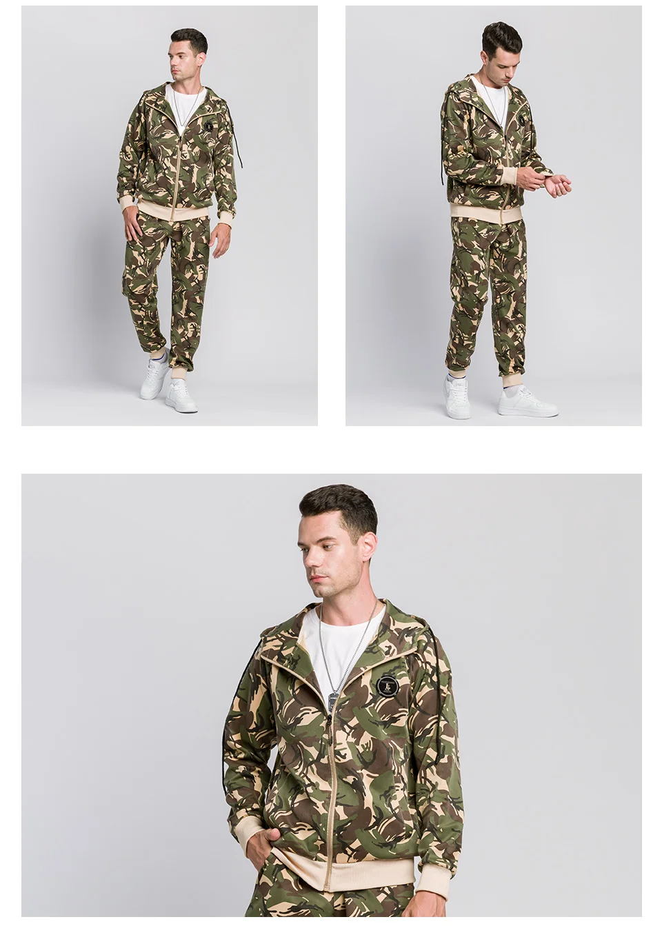 Мужской Камуфляжный костюм, повседневный спортивный костюм из двух предметов, толстовка на молнии и спортивные брюки, камуфляжный спортивный костюм в стиле милитари, Осень-зима 2022