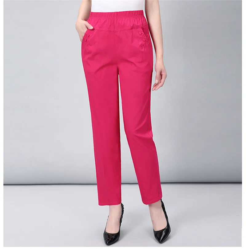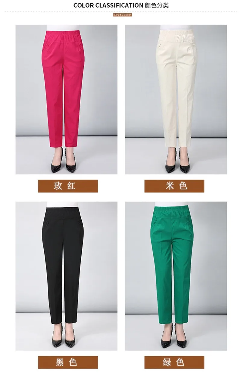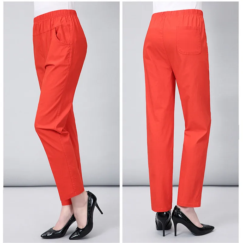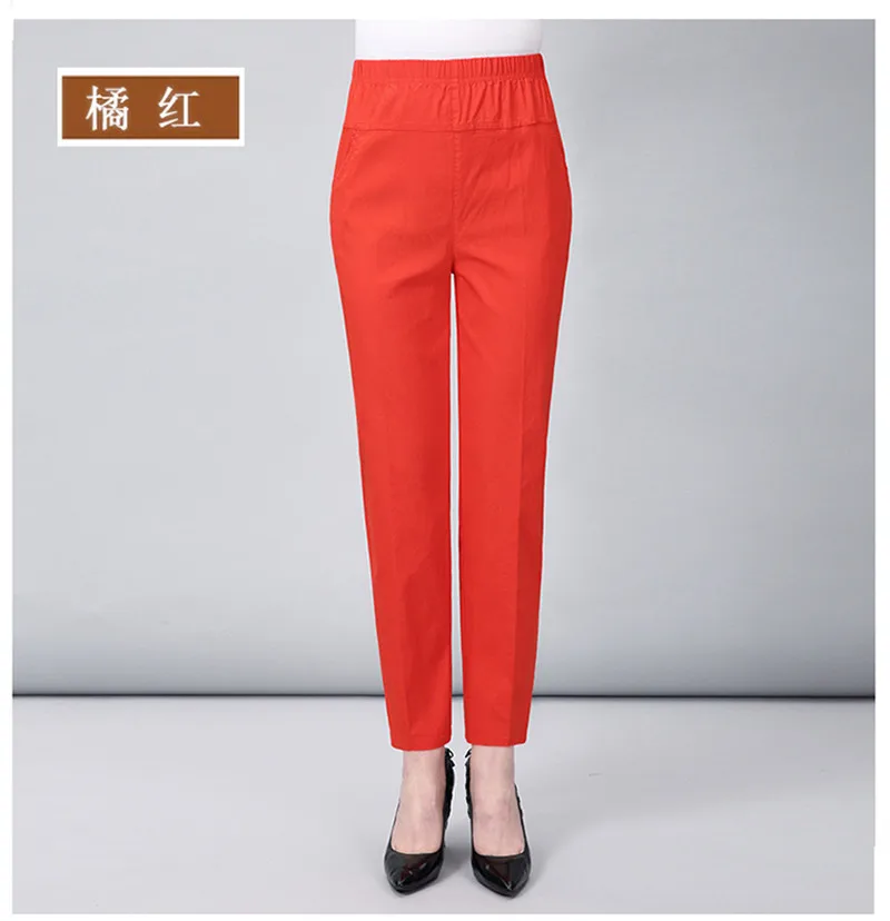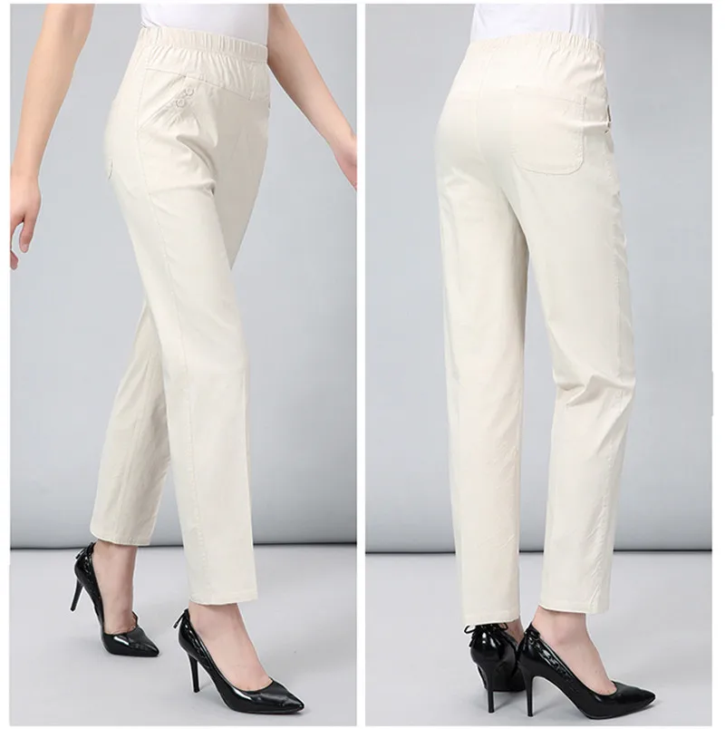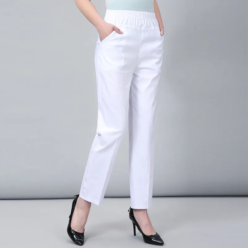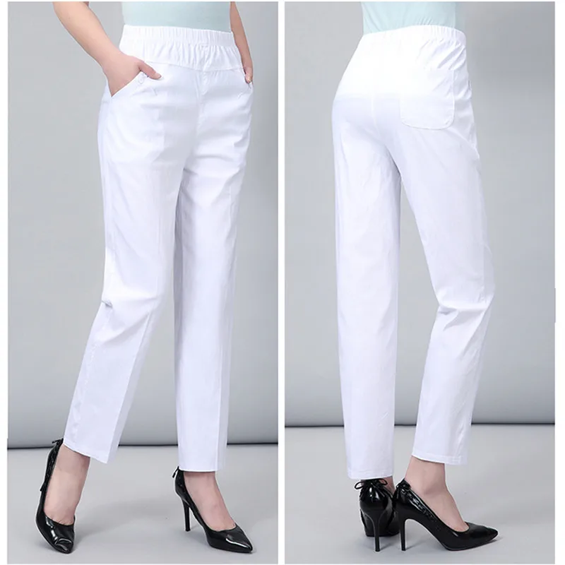 Весенние белые брюки для женщин среднего и старшего возраста тонкие прямые брюки с эластичным поясом брюки до щиколотки 5XL W2102