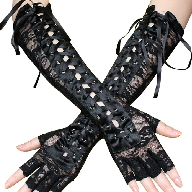 Перчатки женские, сетчатые, кружевные, с открытыми пальцами, панк-перчатки