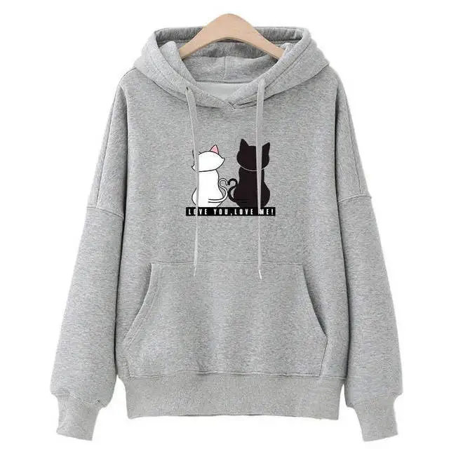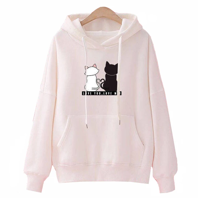 Зимний пуловер, свитшоты, Женская Толстовка С Карманами и принтом кошки, школьная Корейская уличная одежда, Толстовка Оверсайз
