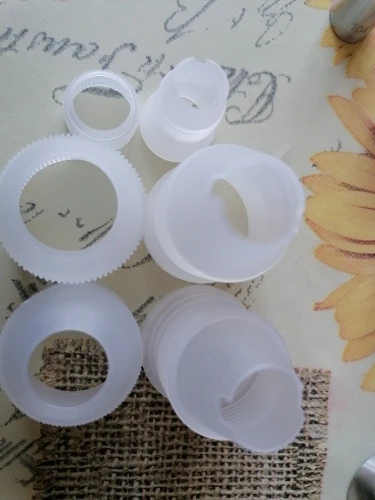 Только маленький адаптер подходит под насадки, у остальных маленькое верхнее отверстие пришлось обрезать чтоб как то применить. Отправили и пришли быстро.