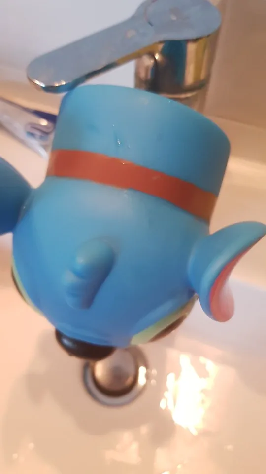 пришлось немного подрезать чтобы налез на наш кран. ребёнку нра