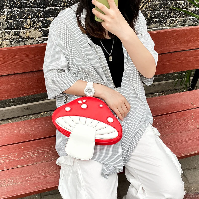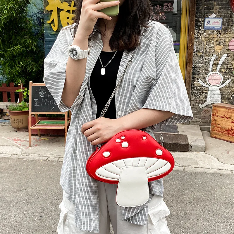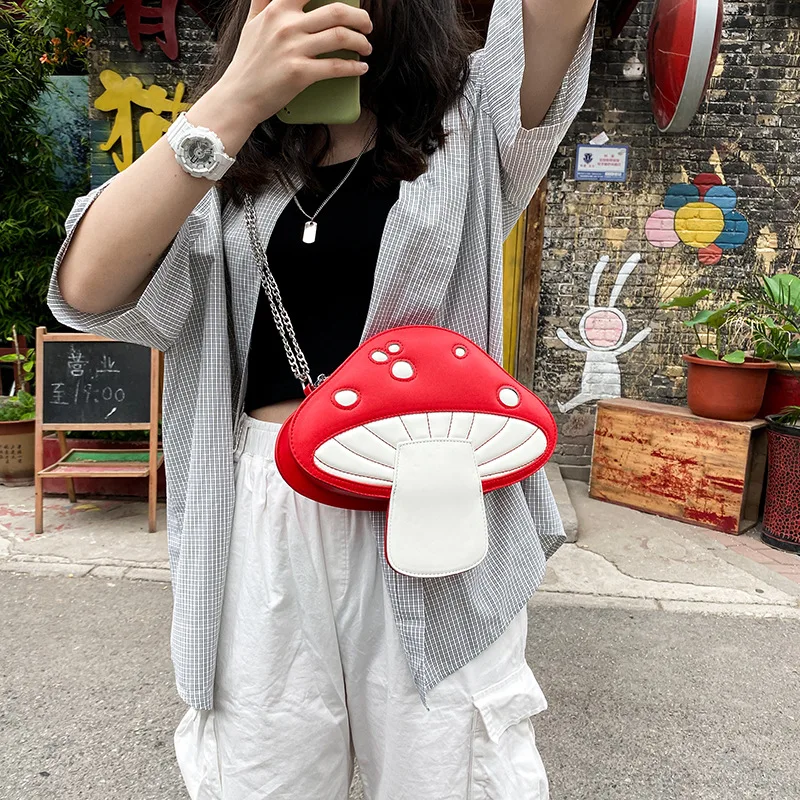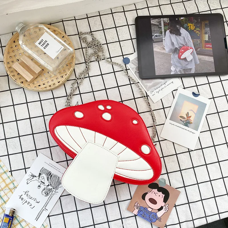 Сумка-мессенджер из искусственной кожи, с забавным рисунком в виде гриба, летняя Милая Наплечная Сумка с цепочкой