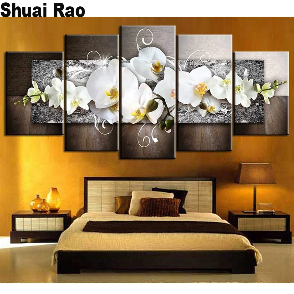 3d круглая Алмазная картина 5 шт. цветок магнолии Алмазная мозаика 5d diy Алмазная вышивка белые орхидеи для гостиной,