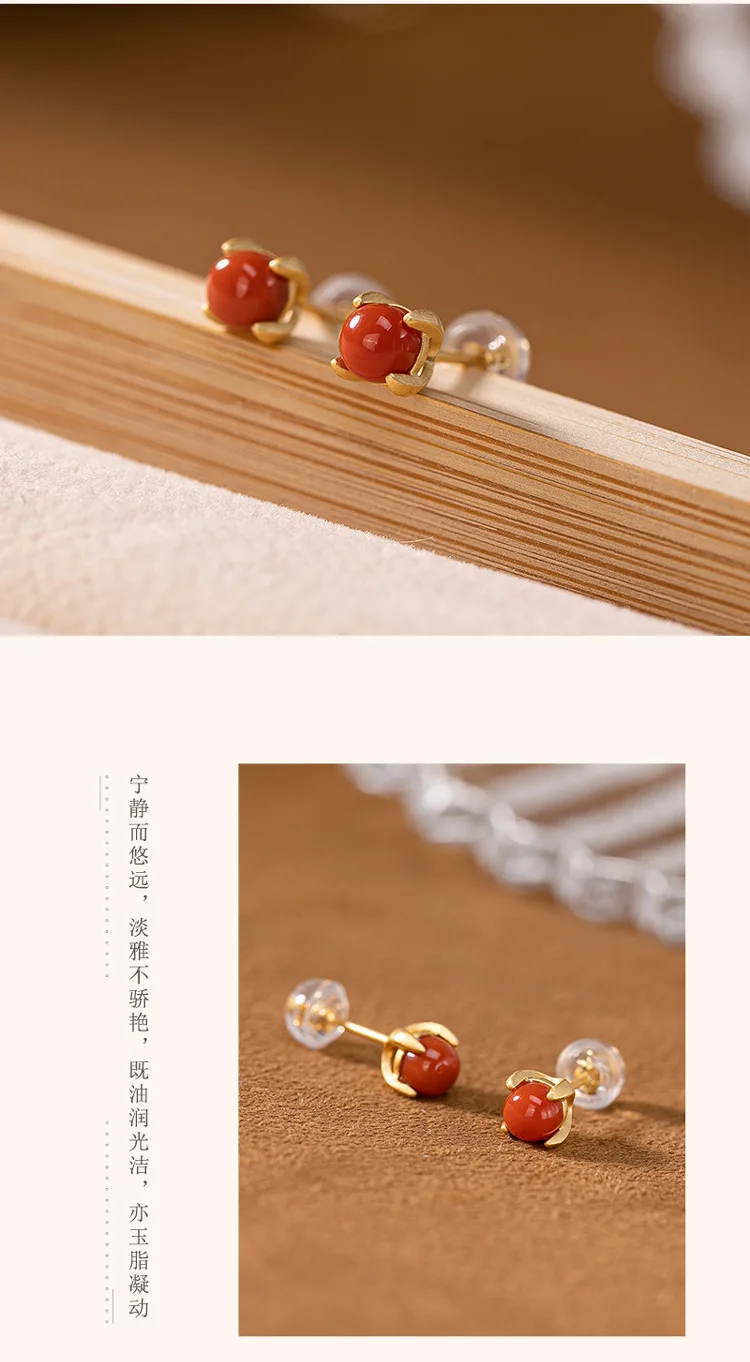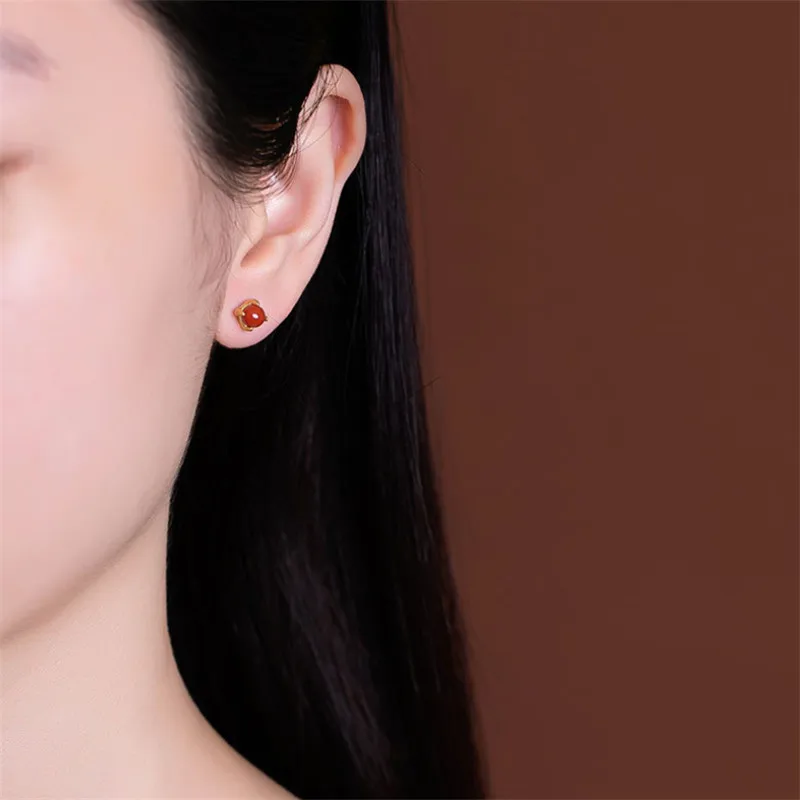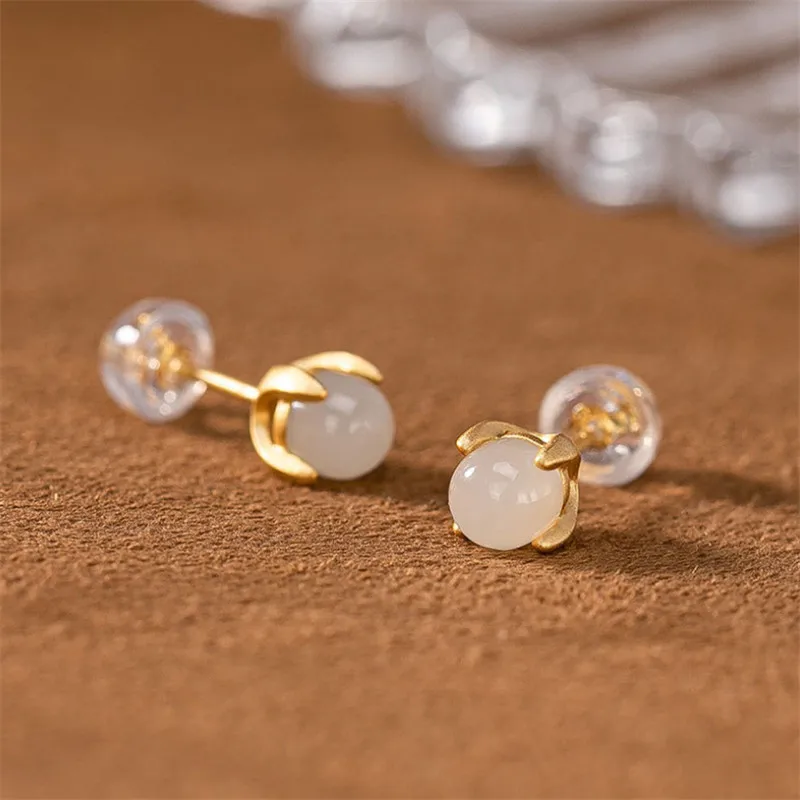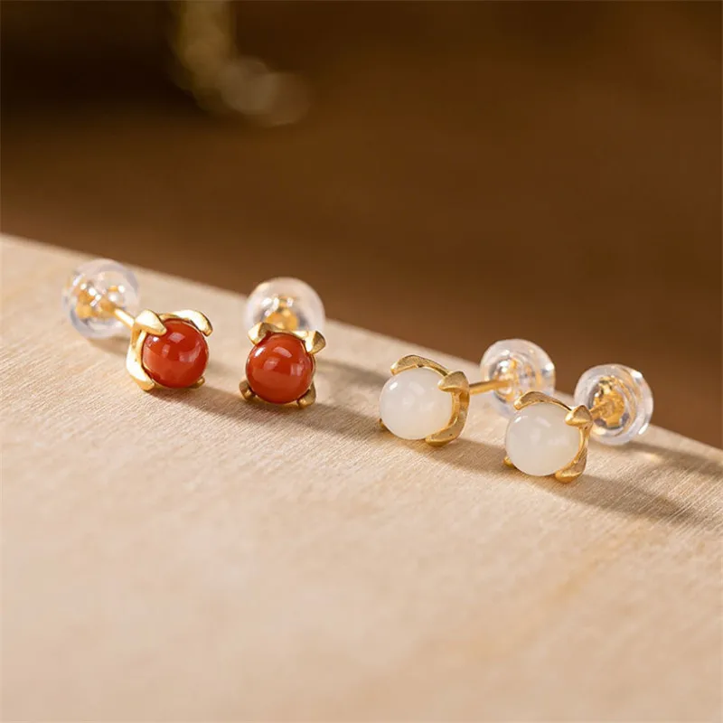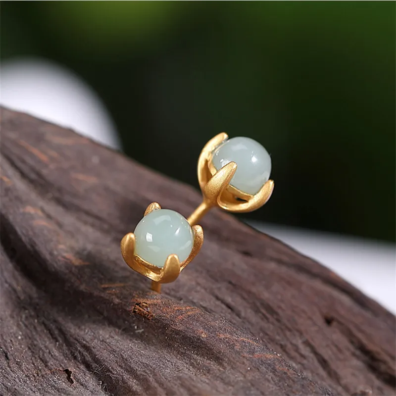 Женские серьги-гвоздики из серебра 925 пробы с натуральным агатом и нефритом