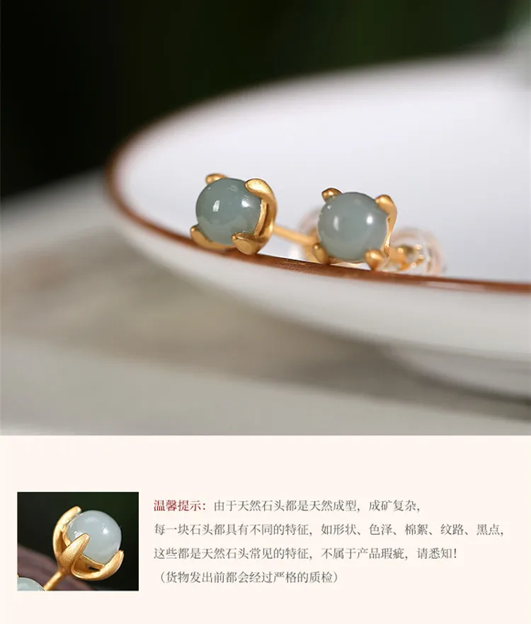 Женские серьги из серебра 100% пробы, с натуральным нефритом